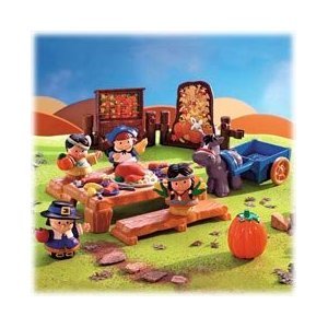 Celebrate the story of the very first Thanksgiving with this new Little People® holiday play set! A pair of playful pilgrims and two trusty Indian friends gather 'round the table to give thanks together for a fantastic fall feast! Thirteen-piece set includes four Little People figures, table and two benches, turkey platter, horse and detachable cart, pumpkin, and two connectable harvest fence pieces.Available at Amazon Check Price Now!